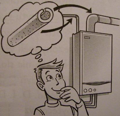 alebo plynu a využíva ju k ohrevu vody, čím zvyšuje účinnosť.